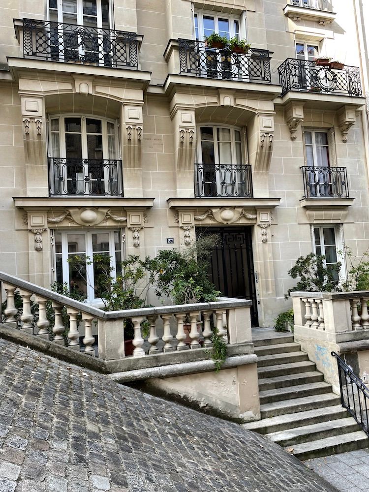 Just stepping out of the Lamarck-Caulincourt Métro is entering another world. Unlike down here in the flat former swamp that is the 7th arrondissement, Montmartre is criss-crossed with sloping streets and steep staircases. It’s a picture postcard Paris overrun with tourists, but there are enough Parisiens in residence to keep it real.