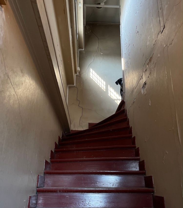 Coming up here always feels like passing from one world to another, partly because the service stairs, according to Madame H, have not been repainted once in at least the 82 years since she was born here. To some the peeling paint and cracking walls might appear sinister...
