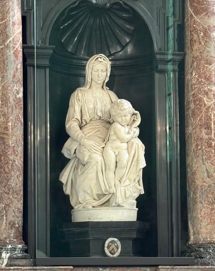 The city was such a hotspot that one of the few Michelangelo's to leave Italy during his lifetime was a Madonna and Child commissioned by a wealthy Bruges merchant. They are still in their niche at the Our Lady Church. Or I should say back in their niche, after being absconded twice, once by the French during the Revolution and once by Hitler during the War...