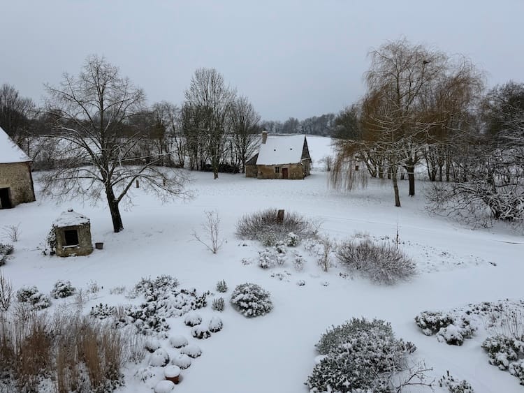 It came down again on the 7th, blanketing the ground in enough white powder to keep us homebound (for someone who grew up in Chicago, it was a trifle, but while non-mountain dwelling French can deal with many crises, a few centimetres of snow is not one of them).