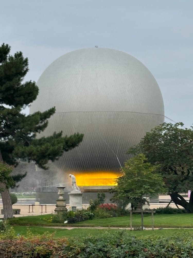 It's now Saturday morning (and I did not hit my husband upon waking!). Running in the Tuileries, I caught my first glimpse en vrai of the Olympic flame, glowing like a dream of summer on the grey horizon.