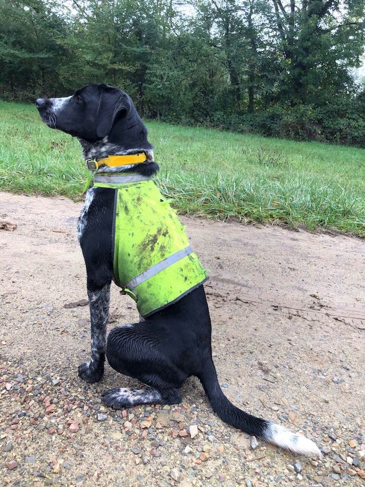 Though the tattered and smattered state of her attire may indicate otherwise, Tasha has actually made progress on the roaming front. On our many jaunts she usually stayed within whistling distance and only once went off for more than half an hour.