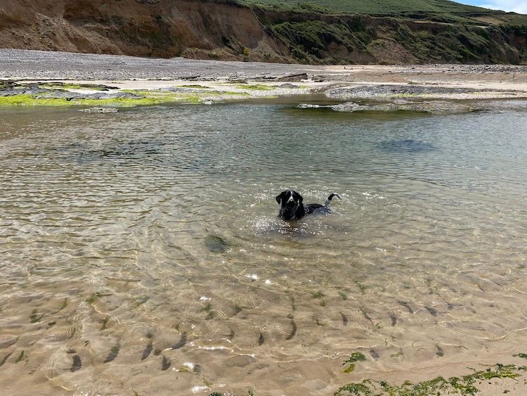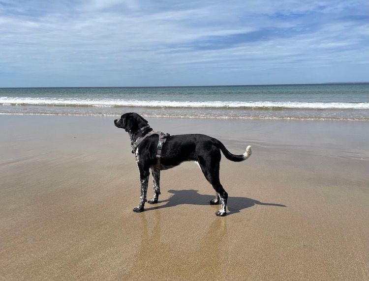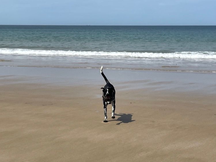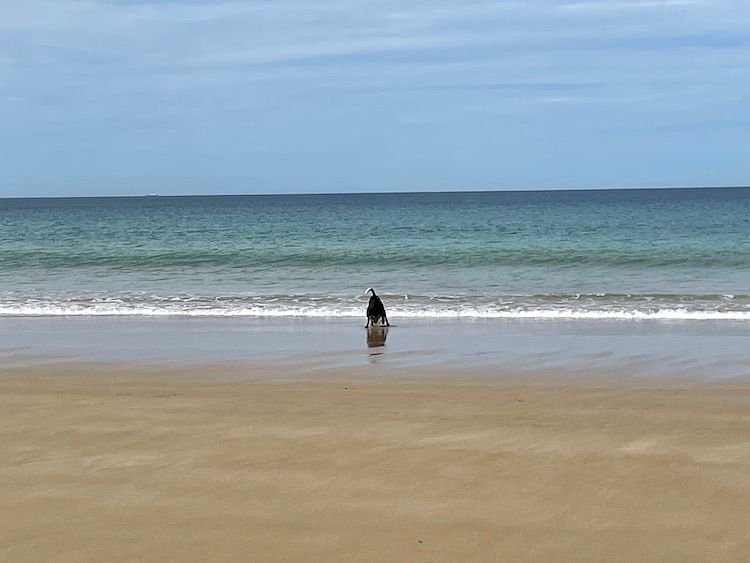 And of course we brought Tasha to the beach. Ever since she took a flying leap into the Seine after a family of ducks two weeks into her life with us, she has had a complicated relationship with water. For a long time she even avoided puddles, but she has regained confidence over the years.