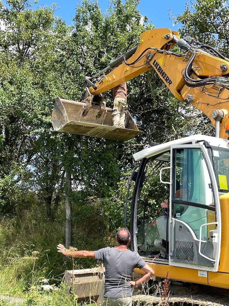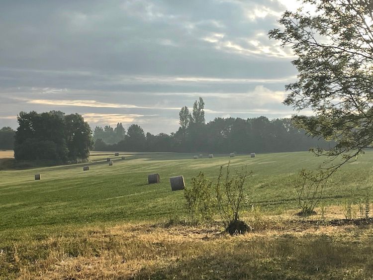 By evening, hedge trimmed, dog and car home, our neighbour Jean-Pierre arrived bearing raspberries from his garden, a manual to renovating old houses in the region (ha!) and a micro-history of the Perche. We sat on the (almost finished) back terrace with a glass of crémant, overlooking the recently harvested field. The conviviality and the stillness brought me half back to my senses.
