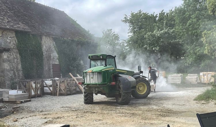 The last weeks, there has been a collective tapping of fingers on the table (architects, masons, terrassiers, gardeners and us) while we waited for the necessary stones to launch the work. The quarry in the Périgord dangled delivery dates like grapes before Tantalus, until finally, last week, the stones really were in the mail.