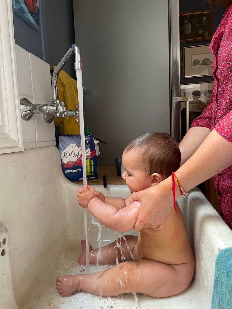 Our pantry sink came in handy after a messy dégustation of my purée de carottes.