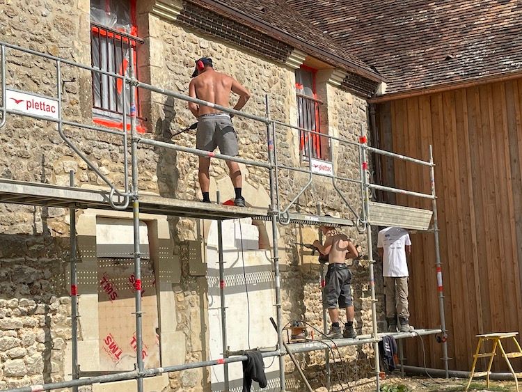 Christopher and Kerry, who recently moved from London to Bangor, Northern Ireland (one of those Covid-inspired moves you read about), arrived first. They were eager to see how things were going in the Perche. Touched by their interest, we agreed to a couple of days out there, even if that week the windows on one side of the house were boarded up while the masons deafeningly drilled off the old plaster...