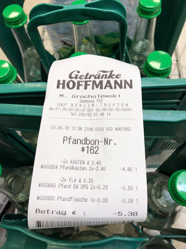 The bottle culture here approaches a mania. People buy case-loads not just at Trinkhalle but also at supermarkets and Spätkaufs, corner shops that stay open late. The Pfand system applies universally.