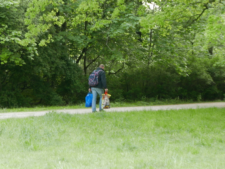 The situation would be much worse, if it weren't for a thriving sub-economy. Collectors, often homeless people, abound. I have seen groups of picnickers happily handing over their empties to men making the rounds. And mornings in the park I often see bottle gatherers with laden with bags...