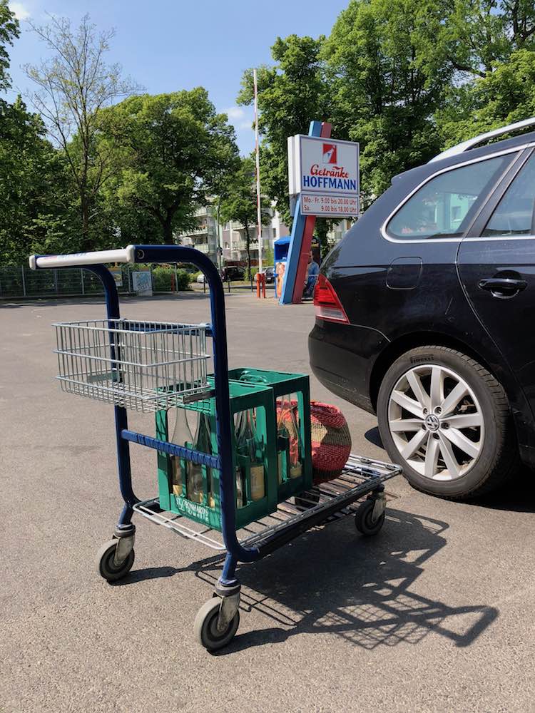 I like going to the Trinkhalle because it brings together several pleasing features of life here. The Getränke Hoffmann closest to us, on the Dammweg, is in an old-fashioned part of former East Berlin. The buildings are low; the streets leafy, quiet and unassuming. Recently a fox crossed the road just in front of my car, stopped in the bushes on the other side and stared me down.