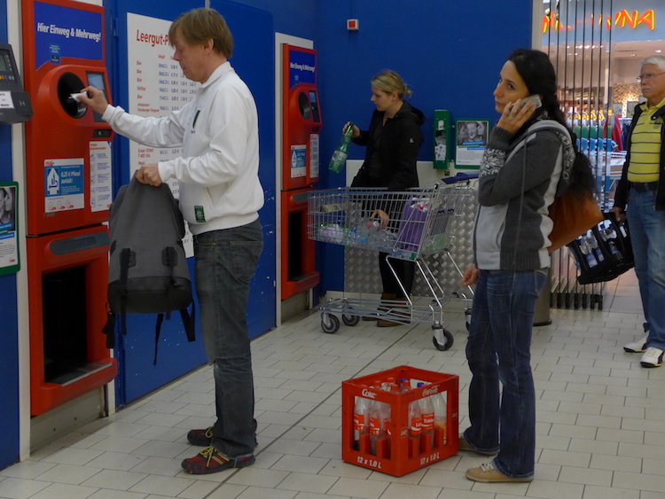 Every supermarket has machines to process the deposit returns and there are often serious traffic jams.