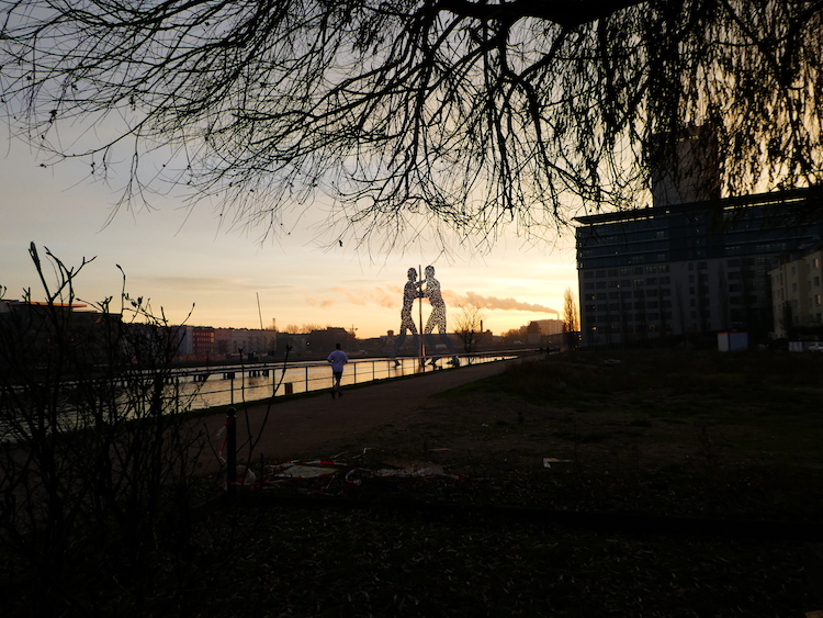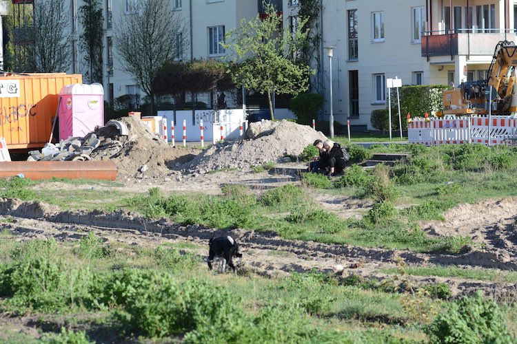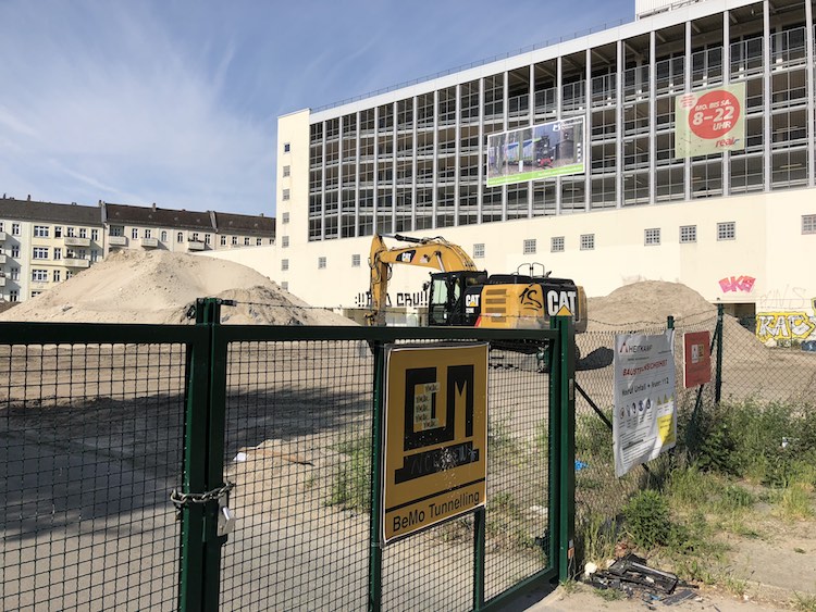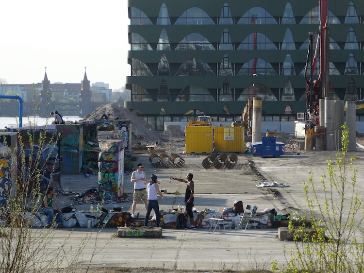 Because a few weeks later they took their stuff and departed, leaving the field as it had been. I allowed myself to think that maybe the legal battle was winning. Then about two weeks ago more vehicles arrived. They just sat there for many days, as if the developers were trying to ease the unhappy residents, about to lose their light and view of the Spree, into the disruption that would follow.