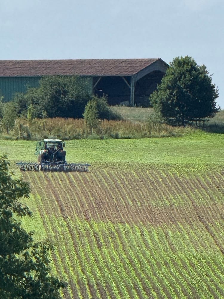 ...before harvesting it for their cattle (whose milk becomes cheese I buy every week at market), they this year delivered the steaming fumier that was then churned into the soil so the seeds could be sown. After a good rain, the first tender shoots appeared.