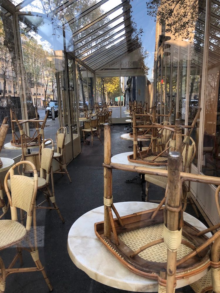 Yesterday I had an iridotomy, a laser treatment to relieve pressure on the eyes. I walked to the doctors’ offices at Odéon along the boulevard St Germain, a thoroughfare lined with cafés and small shops. It looked like Pompeii, everything set up but lifeless.