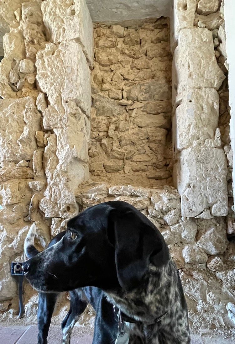 The liberated stone revealed quite a lot about the ur-house. In the above photo, top left over the stairs, you can see the lintel of the former opening between the entry and the living room, as imagined in the original plan. To the left of the stairs, a cupboard emerged, with indentations still in the stone where the shelves would have been slotted.