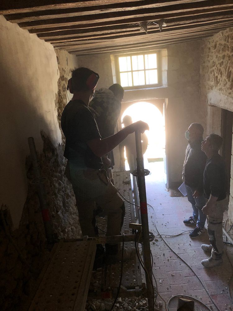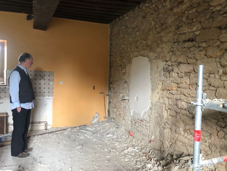 Once the masons tore down the dry wall and the space began to resemble its first iteration, the house seemed to drift back in time. I could almost hear a pigeon cooing, see a farmer stepping over a beam to fork some hay. But it was when they got started removing the 20th century 'improvements' downstairs that the house's soul really felt released.