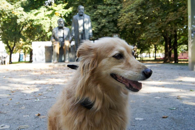 While on paper all dogs in France are created equal, pure-breeds dominate the Paris canine population. One can wonder if at times Elsa, full-fledged mongrel that she is, doesn’t feel a twinge of Otherness. Not so in Berlin, where mutts abound, most of them a far less felicitous mix than she. On some level, Elsa could feel right at home in this egalitarian society.