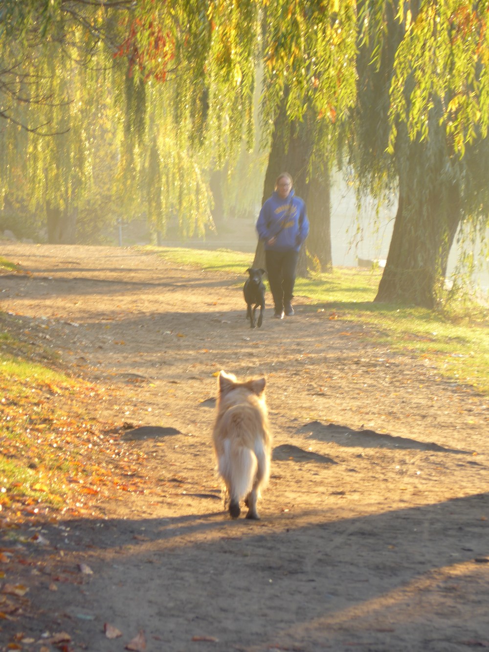 On the street, she remains too focused on the smells in the deep drifts of dead leaves to get fussed about this version of traffic light hell. Even on these narrow, quiet streets they dot corners and are almost universally respected. One must still step smartly before the Ampelmann turns red.