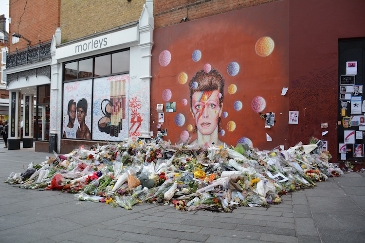 The walk actually ended up being quite touristic. Though I had forgotten, David Bowie was born in Brixton and we happened upon this mural, now shrine, where people were still leaving flowers and taking photos (!).
