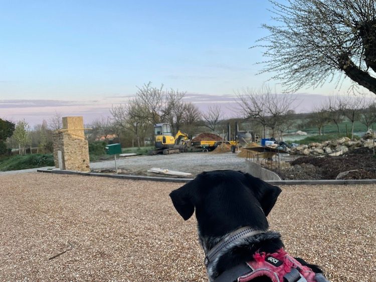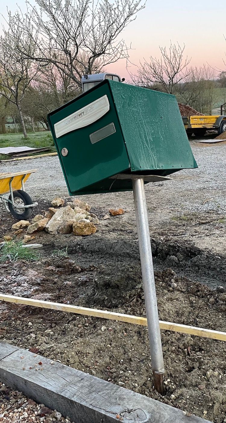 And it all got done. The débotté, the parking area and the stone support for the new letter box.