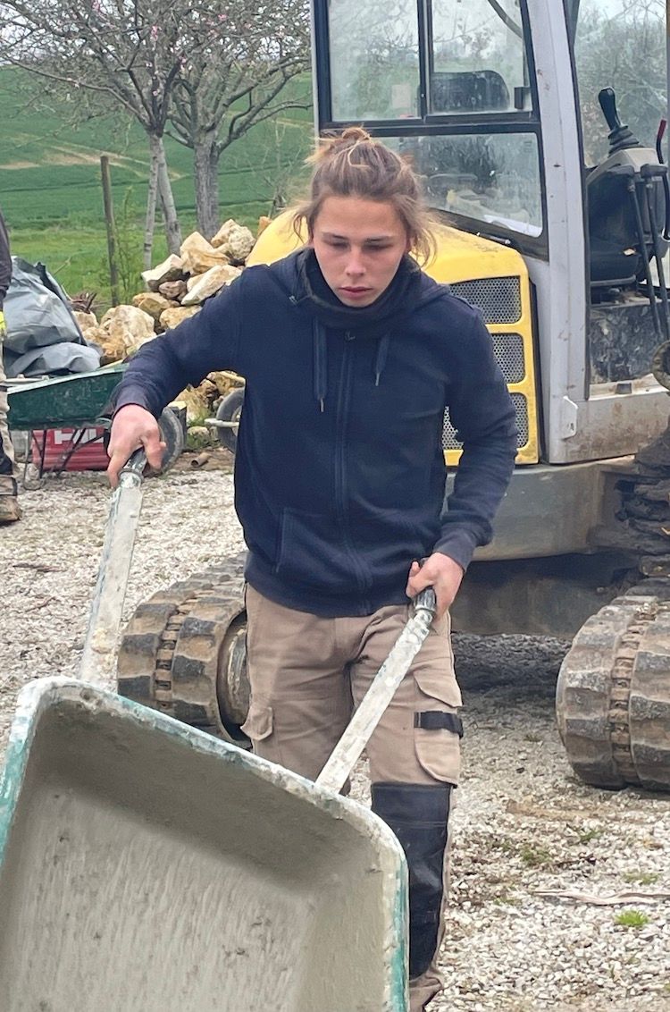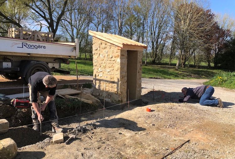 It was here, in the future car park, where a full circle began to take shape. Two members of the original masonry team who had converted the barn into living space and had broken through the 500-year old wall to connect it to the house were back on the job: Christophe...