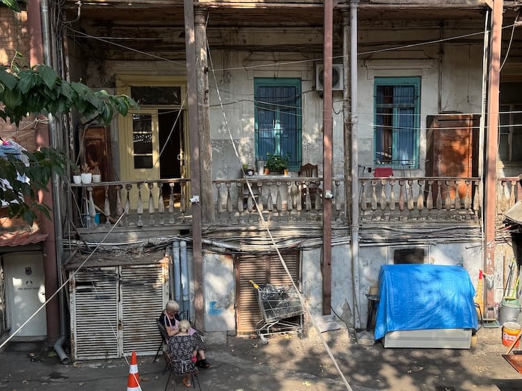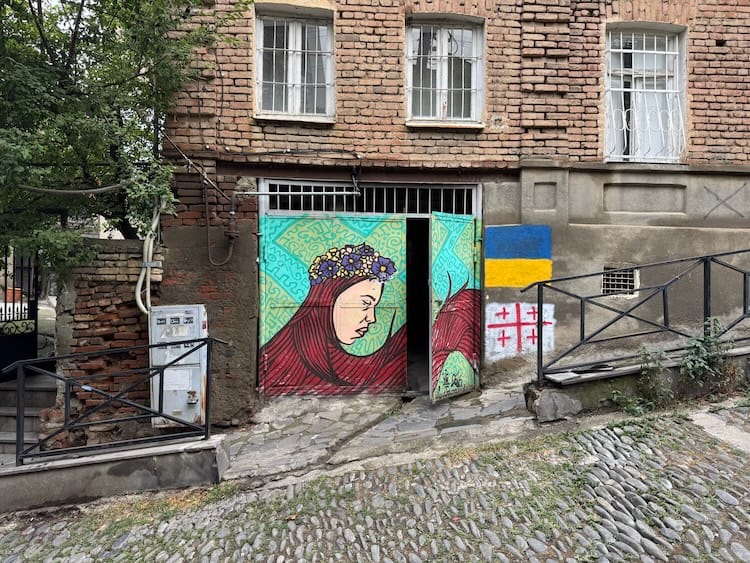 I had two days on either end of the trip to walk and walk the capital Tbilisi, a hilly, labyrinthine city with the Kura River meandering through the middle. In many ways, not much has changed since my last visit to Georgia in 2018, except more vivid street art such as the above, more tourists and the unchecked flow of electric scooters (gasp). It remains a study in contrast, where new asserts itself over old...