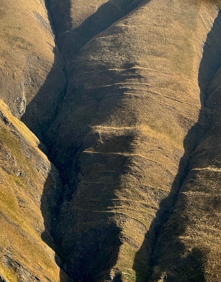 It was from Kakheti that we flew to Tusheti, a remote region that has no power lines or municipal sanitation, just sparsely populated old slate villages and abundant beauty. When David and I went hiking there on my first trip to Georgia in 2009, we were driven in a rickety, four-wheel drive over a treacherous track. It took six hours to travel 50 km/30 miles, and we were often holding on for dear life whilst peering at the void from the windows of the aged vehicle. Which is why this time we went by helicopter, an experience so thrilling that I must share with you this helicopter's-eye view of the sensual mountain contours: