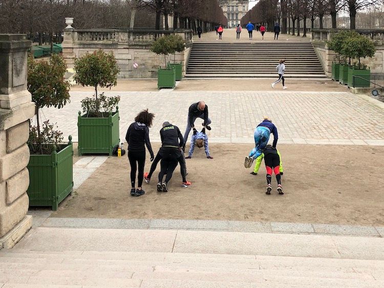 Old-style Parisiens did not exercise at all, much less publicly and in ways that could expose them to ridicule. They would not have been caught dead in garish sportswear. And, formerly a highly individualistic species, they would never have participated in group activities. But long gone are the early 80's when my only encounter during a lone, early morning run was with a hooded exhibitionist.