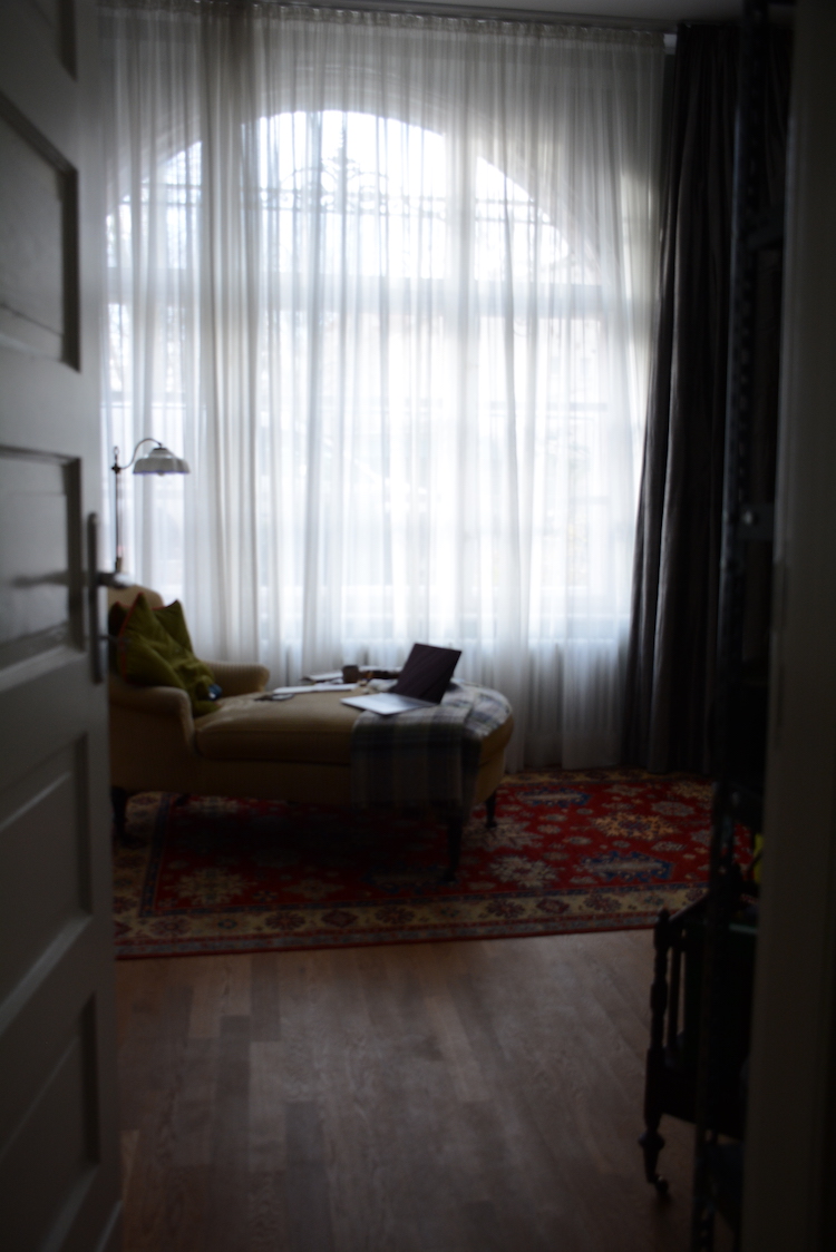 The vice of winter is tightening. In Berlin today the sun will come up at 8.04 and will go down at 15.52. Twilight will begin about 14.30, if the sun is shining. If not it will be hard to ascertain whether or not the sun even bothered to get up behind those clouds. Either way, 2.5 of my four walks with Tasha will be conducted in the dark. With David away for a week, the double absence of light and companionship has reduced my sights.