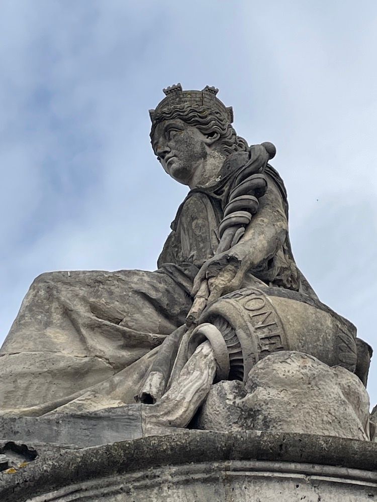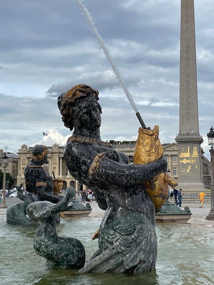 In our climately challenged world, I wondered as I bumped over stone after stone, wouldn’t it be better to replace some of the mineral expanse with greenery? To return to its 1772 roots, so to speak, when flower beds spread underneath the balustrades? You could forgo the equestrian statue of King Louis XV, after whom the place was originally named, and the monarchy.