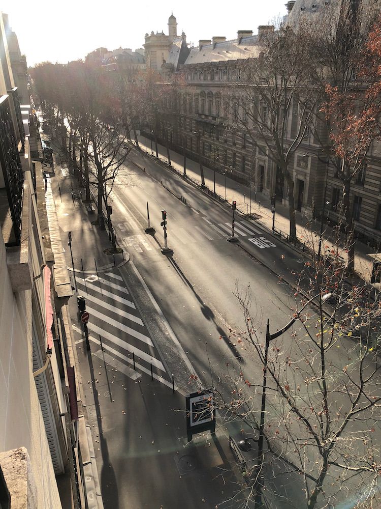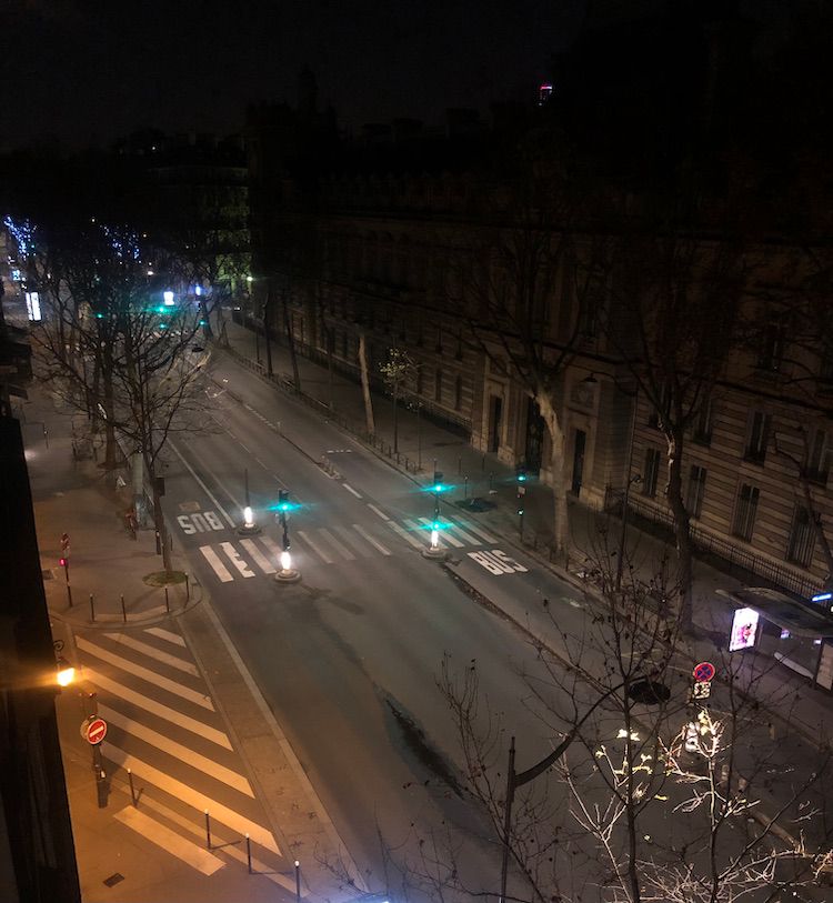 In keeping with the gravity of the times and to discourage outdoor gatherings, the French government cancelled the fireworks last night. With an 8pm curfew that has been in place for the last several weeks, here is the boulevard St Germain on New Year’s Eve.