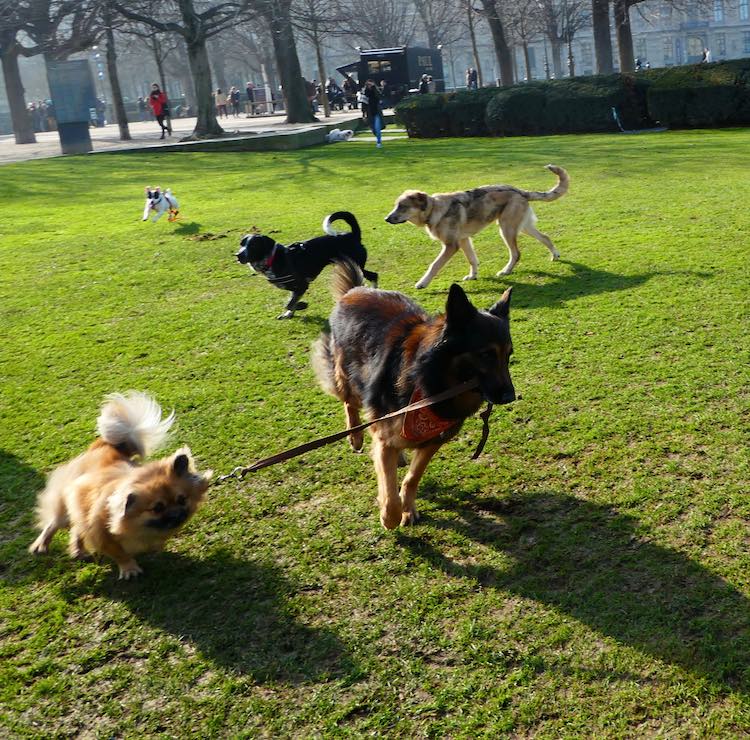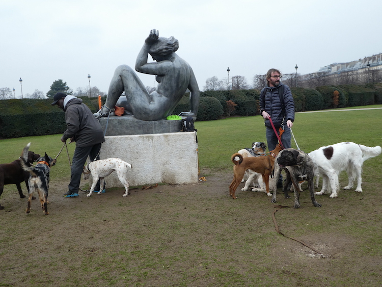 The garden guards and even the police turn a blind eye to this daily gathering where, en principe, dogs are not even allowed on leads much less without them. This laissez-faire policy can only be applauded because Koffi is providing a community service. Dogs enrich the lives of many, many Parisians but like people...