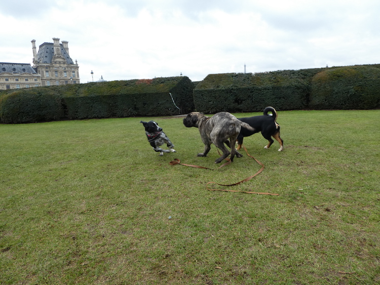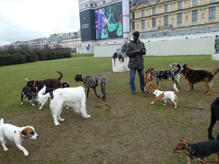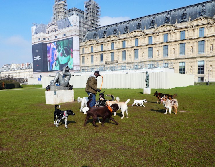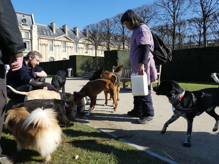 Others are welcome to join and it's quite a scene, all these people milling about with their dogs, plus tourists who stop to have a look on their way to and from the Louvre.