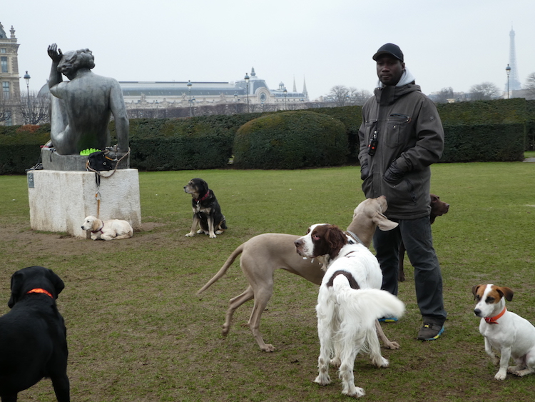 Koffi has a pack of about 10 'paying clients'. While at the park they mingle...