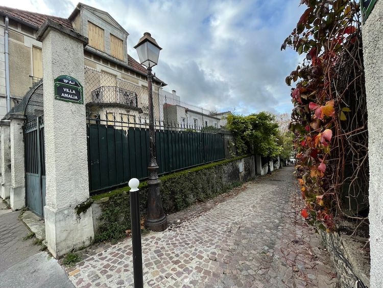 The two neighbourhoods I visited at either edge of the park had mostly served as quarries to excavate stone not just for buildings in Paris but also, oddly, in the US (the administrative name for the Mouzaïa area is actually le quartier d'Amérique). When the supply was exhausted by the end of the 19th century, low, modest houses were constructed in both places because of the fragile, unstable stone underneath. The Butte Bergeyre, after a short period as a rugby stadium (Robert Begeyre was a rugby star killed in the first world war), became a little hilltop village in about 1925; la Mouzaïa (a most un-woke appellation recalling a colonial victory in Algeria), a warren of "villas" or narrow lanes with gated, gingerbread houses, was built between 1880-1920.
