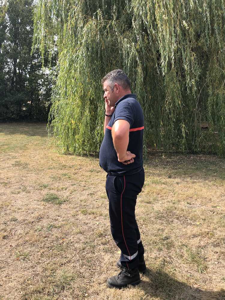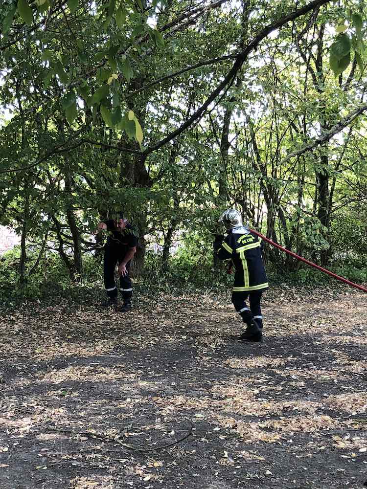 By the time the pompiers drove up, the worst of the fire was over but it was still a relief to have professionals and some hoses on the scene.