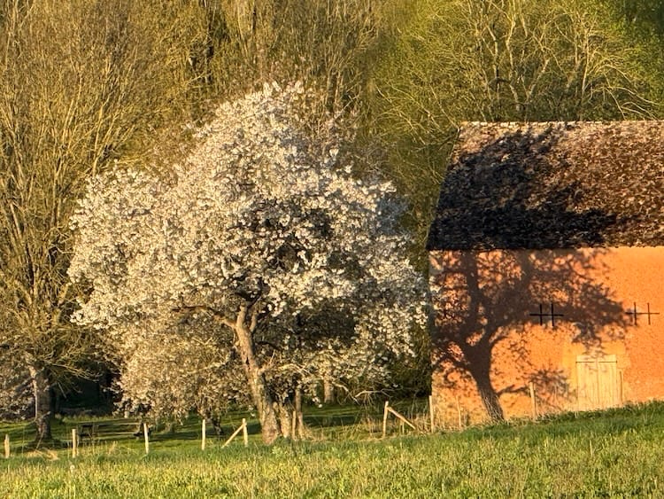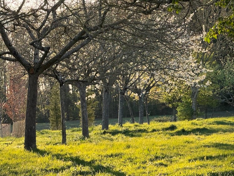 ...all the way around and back through the orchard where cherry and plum are in bloom and the apples not far behind...