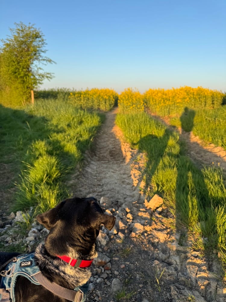 ...and carrying on alongside the field of formerly May flowering rapeseed...
