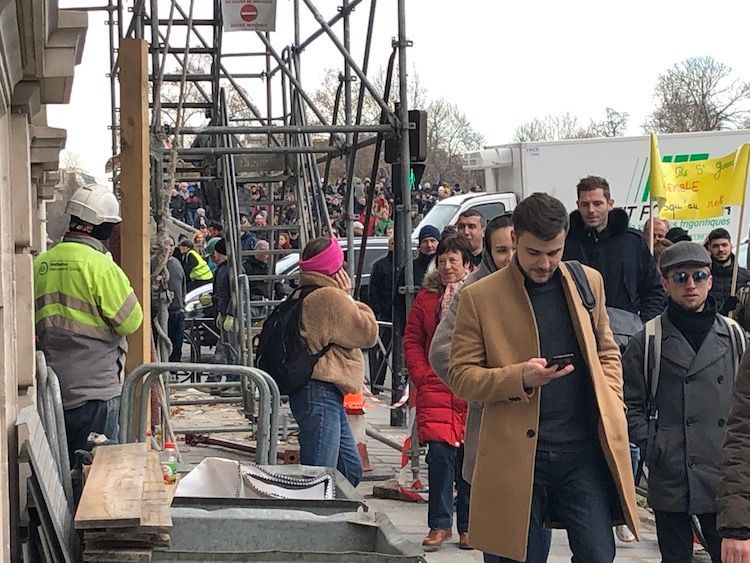 Certainly there were none of the electronic trottinettes (scooters) for people to glide around the city on, heedless of any pedestrians in their path. And the internet was only nascent; working remotely from home was years away. As I remember it in 1995, all activity ground to a halt. But here, last Tuesday, the scaffolding that has been blocking passage on the rue de Solférino for years, was finally being dismantled, even while a wave of protestors flowed by on their way to the National Assembly.