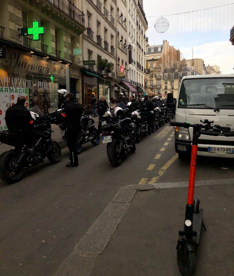 Which translates into Paris once again looking like an anthill that has been poked with a large stick. All the people who are usually travelling underground have surfaced. Streets are blocked solid with cars or police vehicles...