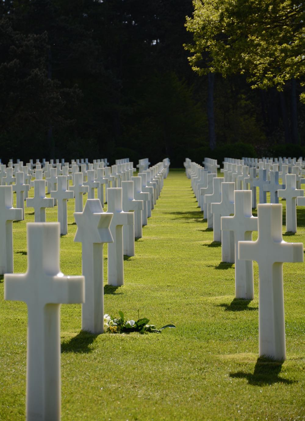 After Omaha Beach, we went to the American Cemetery. There are few sights more moving than those 9387 white grave markers stretched out row after row after row. On Tuesday, they too were gleaming in the sun.