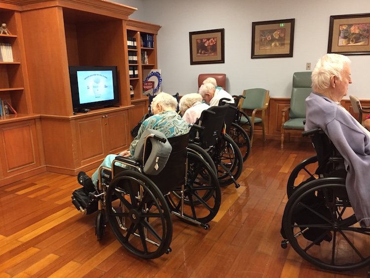 He was still there when we arrived. What a depressing place. Everyone is in a wheelchair; most are either asleep or comatose. You start to wonder just how long you want to 'live'.