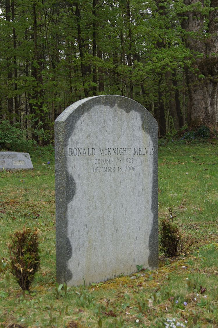 Though it's surrounded by deep woods, I had never seen a living creature. But that Sunday morning a deer turned and looked at me, before leaping gracefully, silently into the forest. Then a second one bounded away, its cotton white tail bobbing between the trees. Five minutes later the sun rose higher and left this shadow on their grave.