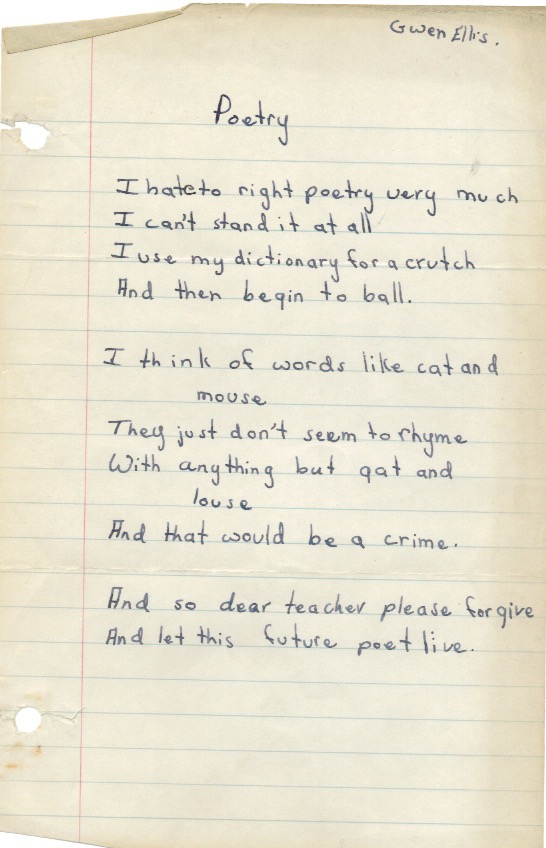 The more I sifted through my mother's things, the more I discovered a person I did not know. Not the 10-or-so-year old child who wrote this cheeky, almost rebellious (for c 1940), poem: