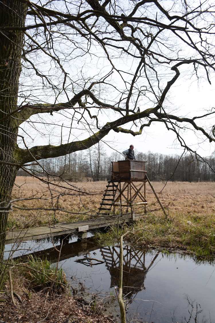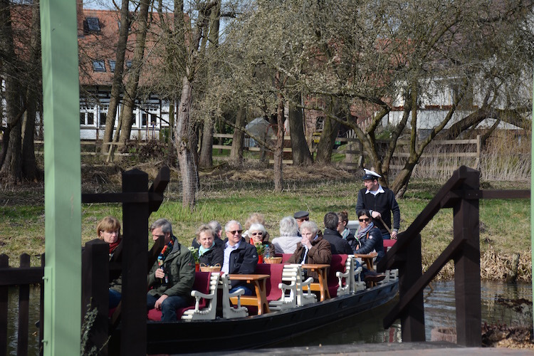 So last Easter Sunday morning, when the air finally felt springy and we wanted to take an outing, I let him guide us to the Spreewald, a woody area southeast of Berlin. We got off the Autobahn about 50kms from Berlin (in fact in the Unterspreewald) and stopped in one village, then another. No, he said, not here. In Märkisch Buchholz he shooed me out of the car, to the ATM machine, so he could fully concentrate his powers on the map and our book Natur Erleben. When I returned: “We’re going here,” he pointed to the inauspiciously named Schlepzig. It was also inconveniently located right on the crease in the atlas (yes, we still use paper), making navigation difficult, but off we drove.