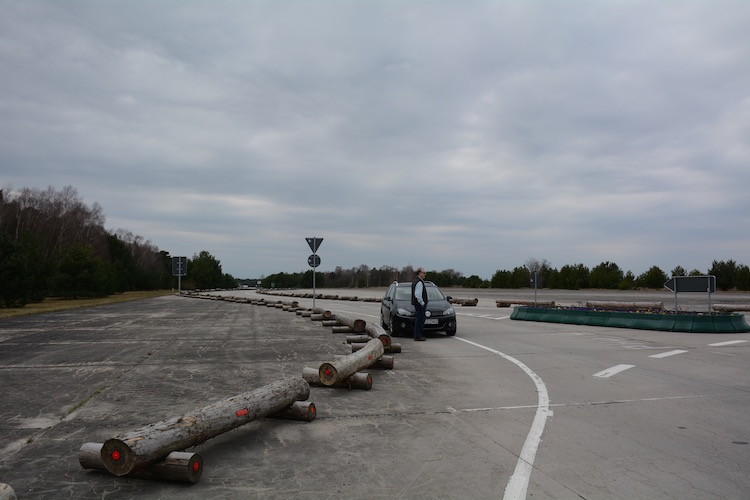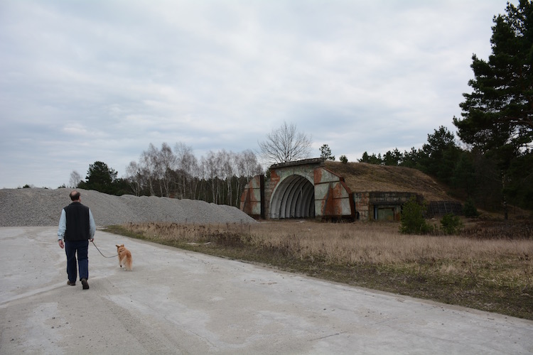 We headed back another way, a straight shot to the Autobahn. After several kilometres we realized we were in the middle of a former military complex, complete with abandoned airplane hangars.