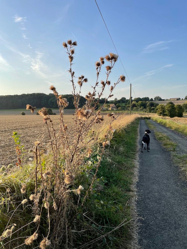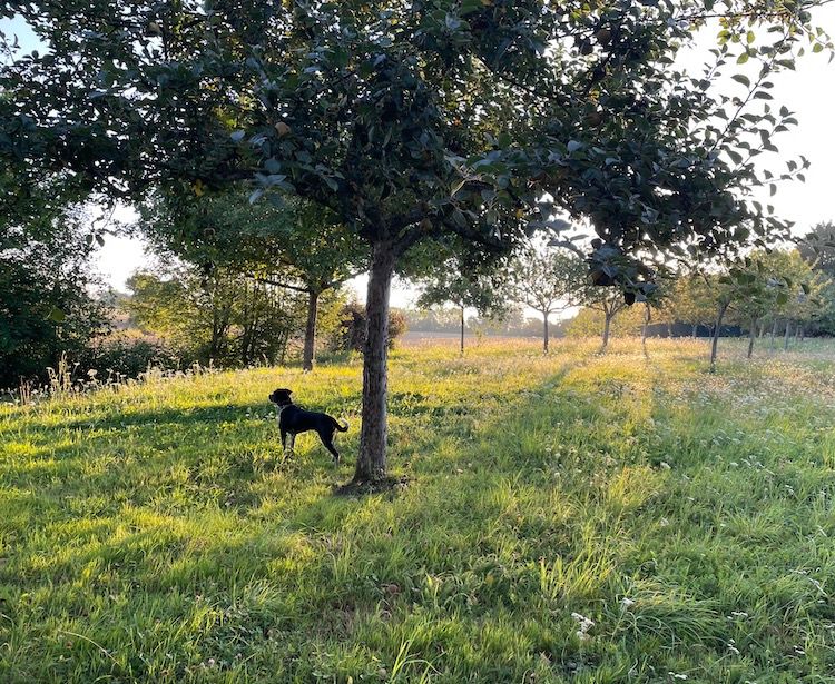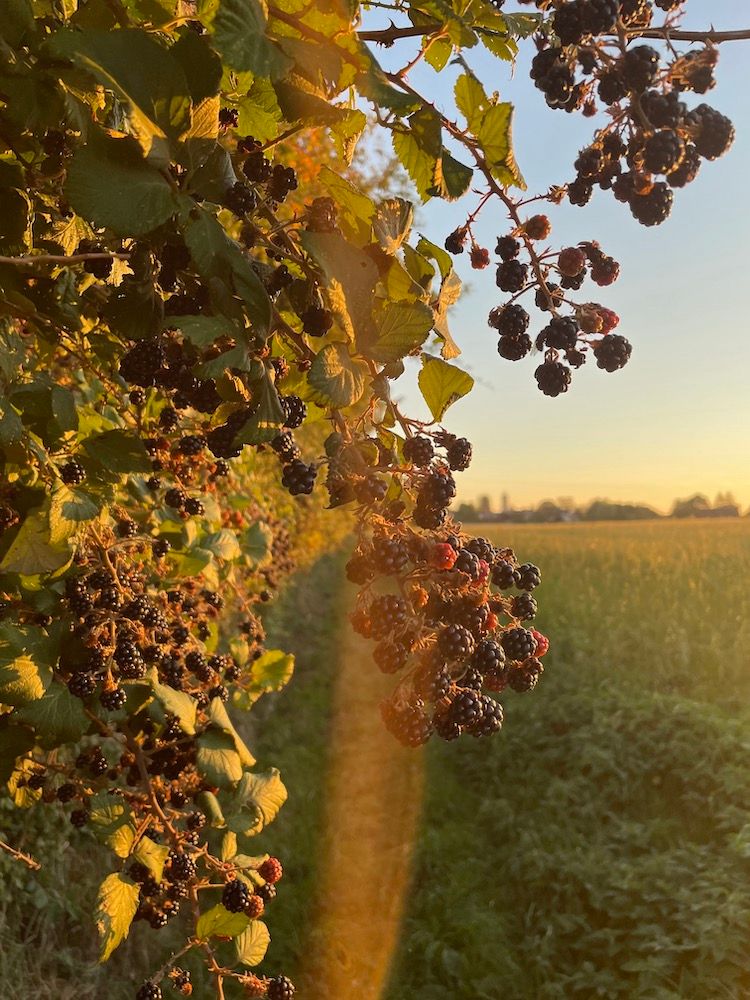 In another sign of autumn, the days are shrinking. I wake to a dark horizon, the sun only appearing as I set out on my walk with Tasha. A walk that has slowed considerably since the blackberries started ripening. For a long stretch, there is a wall of bushes and I can't help myself stopping and tugging at every plump possibility. Tasha, I have discovered, is a berry fan too.