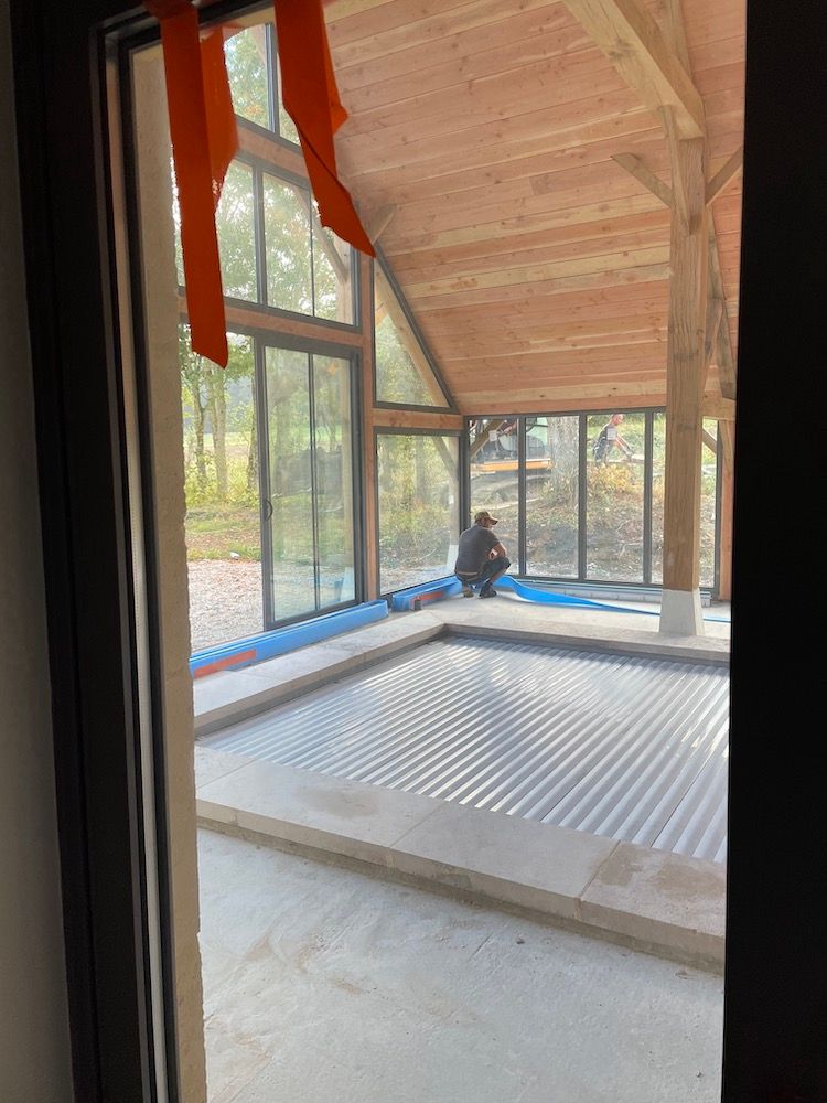 Pool workers began trickling back to put on the finishing touches. They also turned on the heat, meaning that David has tested the waters too and declared our cathédrale à la natation worth every centime.
