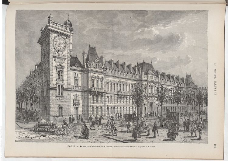 Along came the Revolution. Nuns and nobles were evicted (or worse), and the religious institution was converted to the Ministry of War. For a while, Napoleon’s brother (until they fell out and Lucien fled to Italy), then mother, lived in the hôtels particuliers on the premises, but those too were eventually handed over to the army. New buildings, plus a double-faced clock tower, were built when Baron Haussmann bulldozed the boulevard in his remaking of the city…
