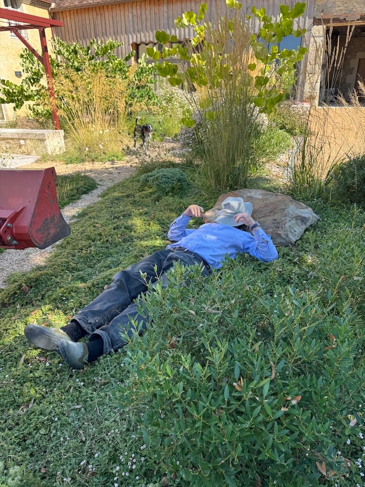 But even this summer challenge comes back to the sun: the boar and the badgers are coming chez nous because they can find more to eat in our watered garden than in the super dry corn fields and woods beyond.